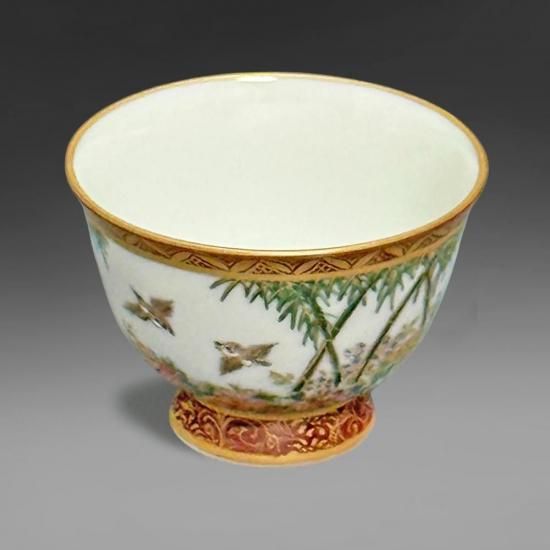 小山与山作「花絵猪口」は、繊細に描かれた草花文が特徴の優雅なそば猪口です。手にしっくりと馴染む程よい大きさで、日常の食卓に自然な華やぎを添えます。温かみのある色彩と上品な絵付けが調和し、伝統技法に裏打ちされた高い完成度を感じさせる逸品です。その美しいデザインは、器としての実用性を保ちながらも、器を眺める楽しみをもたらします。料理の味わいを引き立て、日々の食事の時間を豊かに彩ります。全四種があり、それぞれに四季の草花や鳥が描かれている繊細な筆運びと品格ある絵付けが見事に調和し、盃一つひとつに季節の美と日本の情趣が宿る逸品です。